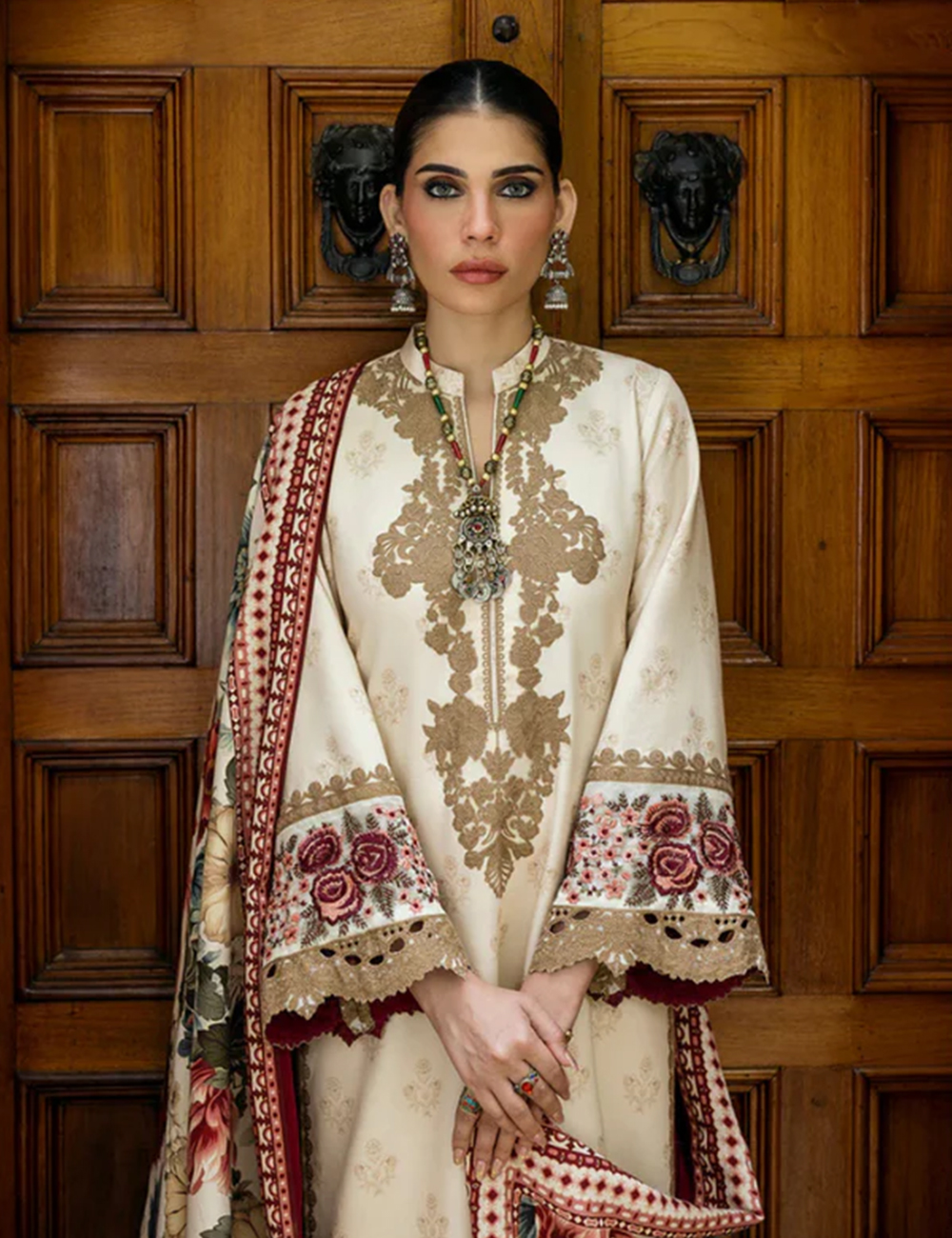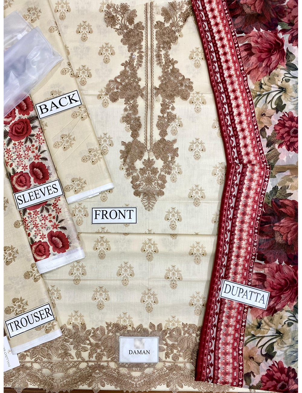 • Printed lawn front with heavy embroidered spangle work neck patch & heavy embroidered daman boarder